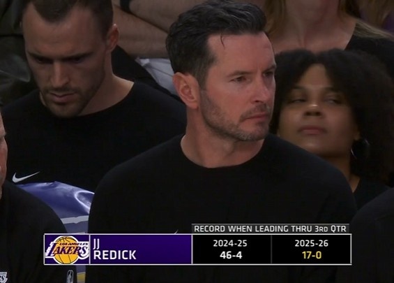 不敗金身危險(xiǎn)?本賽季湖人第三節(jié)領(lǐng)先情況下戰(zhàn)績(jī)17