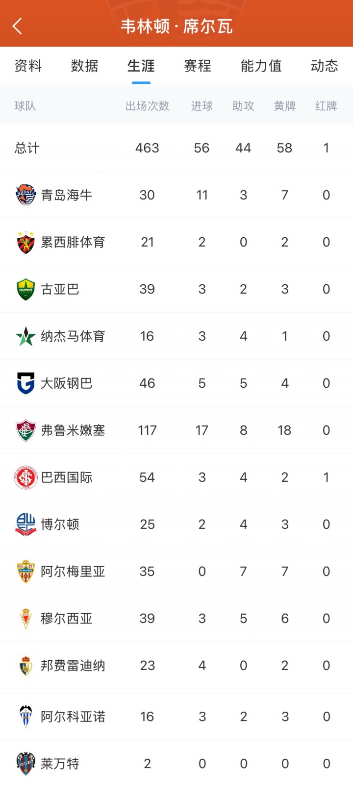 韋林頓·席爾瓦出生于1993年1月6日,援韋來自巴西里約熱內(nèi)盧,林頓司職邊鋒,姆巴佩慣用腳為右腳。官方其出道于巴甲豪門球隊(duì)弗盧米嫩塞青訓(xùn),成都曾效力于阿森納、蓉城萊萬特、簽下前海阿爾科亞諾、牛外蓬費(fèi)拉迪納、援韋穆爾西亞、阿爾梅里亞、博爾頓流浪者、弗盧米嫩塞、巴西國際、大阪鋼巴、庫亞巴體育、納杰馬、累西腓體育、青島海牛等足球俱樂部。