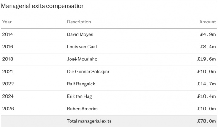 曼聯(lián)解雇阿莫林使得他們自弗格森2013年退休以來在主帥解約金上的森退花費(fèi)接近1億鎊。阿莫林的休后合同還有18個月到期,他將獲得1000萬鎊的曼聯(lián)補(bǔ)償。